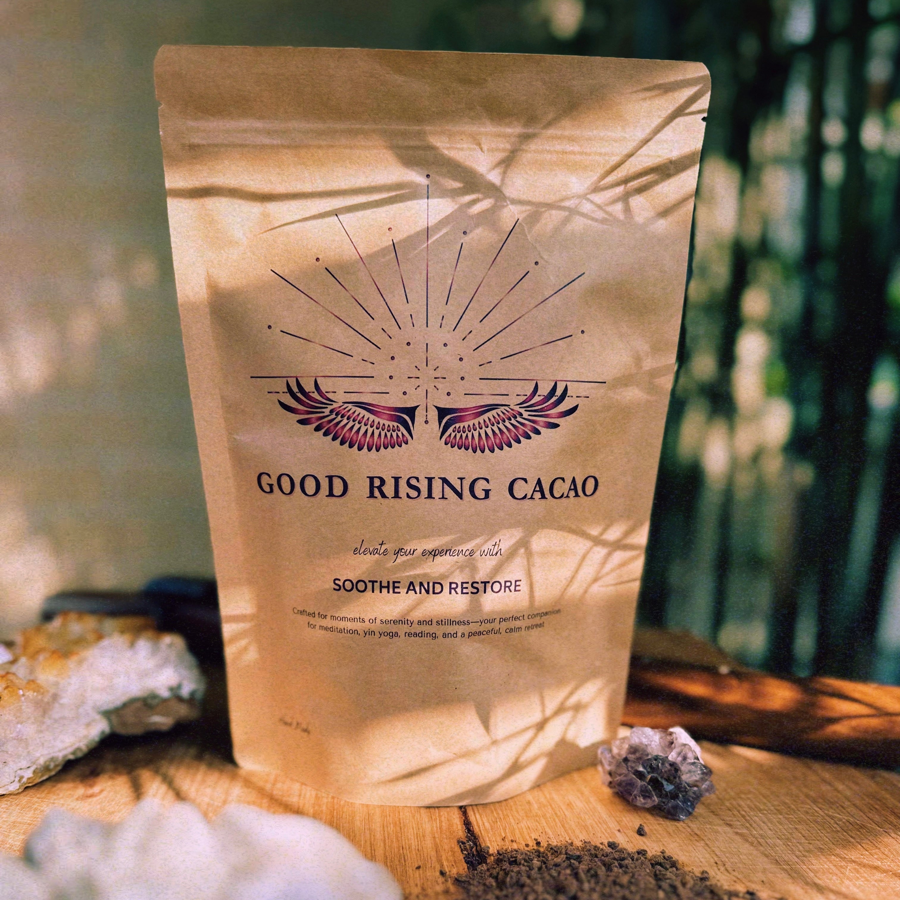 Soothe and RestoreA calming blend of cacao and reishi, known for its relaxing and adaptogenic properties. This night time blend soothes the nervous system, eases stress, and promotes restful sleep. Perfect for unwinding and finding peace after a long day.